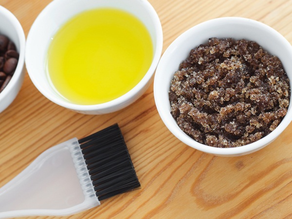 المكوّنات: ثلاث ملاعق كبيرة من القهوة. ملعقة كبيرة من زيت الزيتون، أو زيت اللوز. ملعقة كبيرة من العسل. ملعقة كبيرة من السكر.